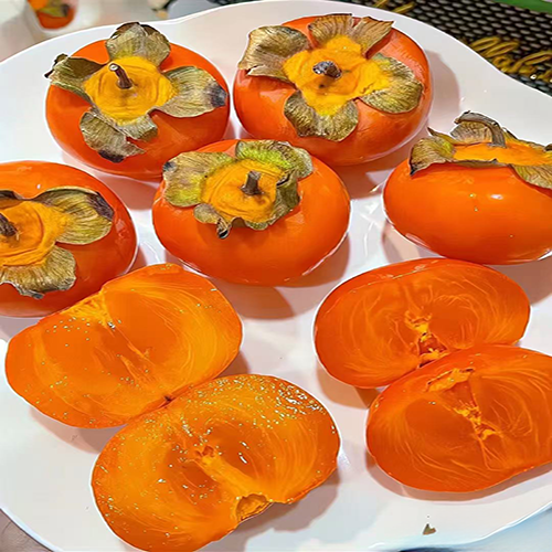 大连柿子果实饱满,果肉厚实,表皮光滑,透着诱人的光泽。熟透的柿子,轻轻一撕,便能看到橙红透亮的果肉,口感滑腻软糯,入口即化,甜蜜的汁水瞬间在口中蔓延,浓郁的柿香萦绕舌尖。它富含维生素A、膳食纤维、胡萝卜素等营养物质,具有清热润肺、生津止渴的作用。除了直接品尝这份秋日的甜蜜,还能经过晾晒、捏瓤等工序,制作成柿饼,表面那层白霜更是增添了独特的风味与美感。